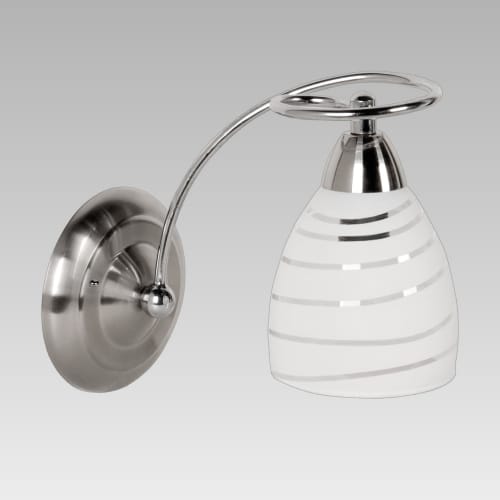 Елегантен аплик в класически стил с полупрозрачно стъкло и хромирана основа, подходящ за монтаж на стена в спалня, коридор, всекидневна, хол, кухня, трапезария и др. Това стенно осветително тяло работи с 1бр крушка Е14/40W, която не е включена в комплекста. Аплик ARIA е прекрасно допълнение към полилей тройка код 635 или петица код 634 от същата серия.