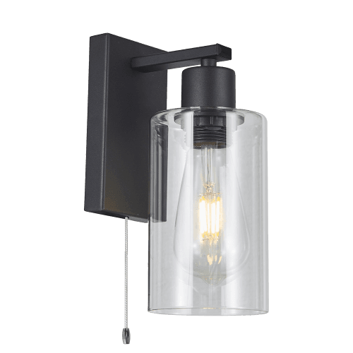 Дизайнът включва прозрачен стъклен абажур, който разкрива осветителния елемент и създава приятна, равномерна светлина. Металната конструкция в пясъчно черен цвят е не само здрава и надеждна, но и придава модерен индустриален характер на аплика.