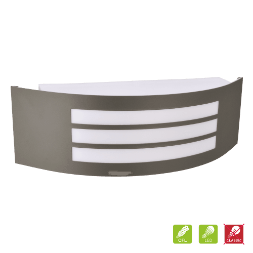 Корпусът на аплика е изработен от устойчив метал с тъмносиво покритие, което му придава изтънчен и същевременно практичен вид. Опаловият плексигласов дифузер разпръсква светлината равномерно, създавайки уютна атмосфера около дома ви.