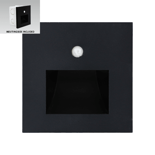Модерна лед луна за вграждане в стъпала или стена със сензор STEP LIGHT SUNNY SENSOR в квадратна форма и черен цвят. Подходяща е за монтаж във вътрешни стълбища и коридори. Това осветително тяло не е влагозащитено. Серията се предлага в различни цветове. Монтажната кутия е включена в комплекта.